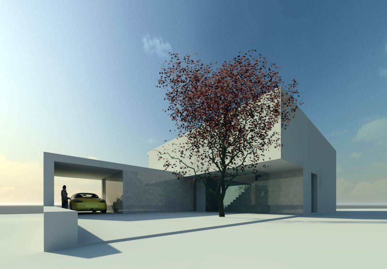 Dieses private Wohnhaus wurde im Rahmen eines beschränkten Wettbewerbs mit dem ersten Platz prämiert. Charakteristisch ist der raumgreifende, skulpturale Baukörper, der das Haus und die beiden Höfe mit einer Geste räumlich umfasst und abgrenzt. Besonderer Bauherrenwunsch war eine großzügige Verbindung von Innen- und Außenraum. Das Gebäude ist das erste einer Serie von Entwürfen, die für einen Immobilienentwickler gefertigt wurden, der zeitgenössische Wohnhäuser für gehobene Ansprüche erstellt.